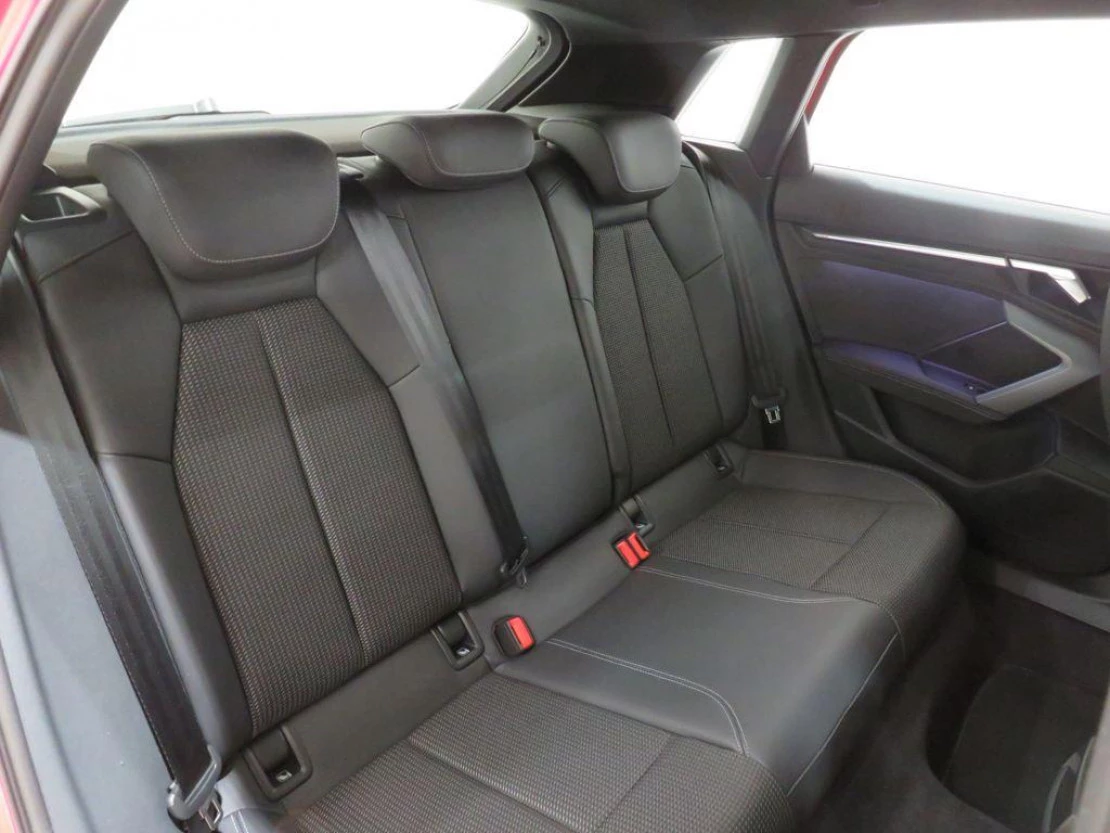 - Asientos de tela (material principal) y de cuero sintético (material secundario)